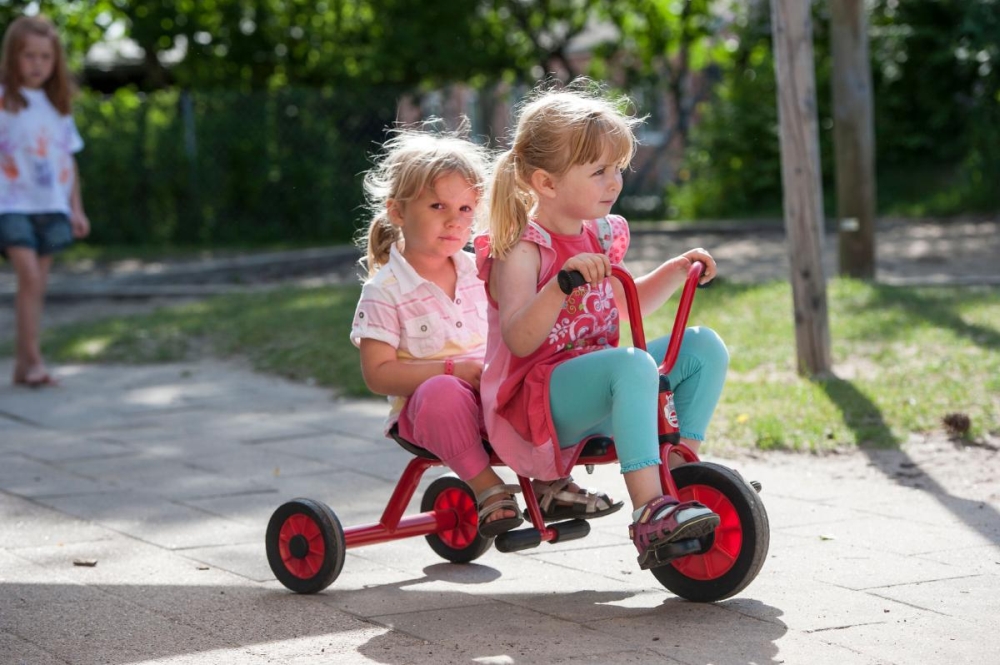 Mit dem Taxi können zwei Kinder gleichzeitig zusammen fahren und spielen. Den Spielkameraden am Sandkasten abholen oder in fantasievollen