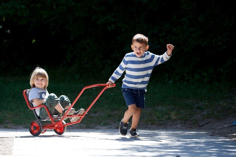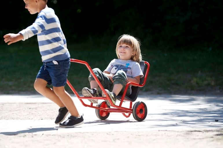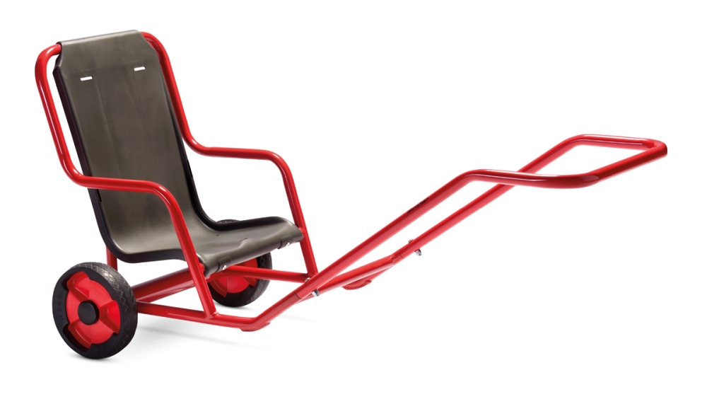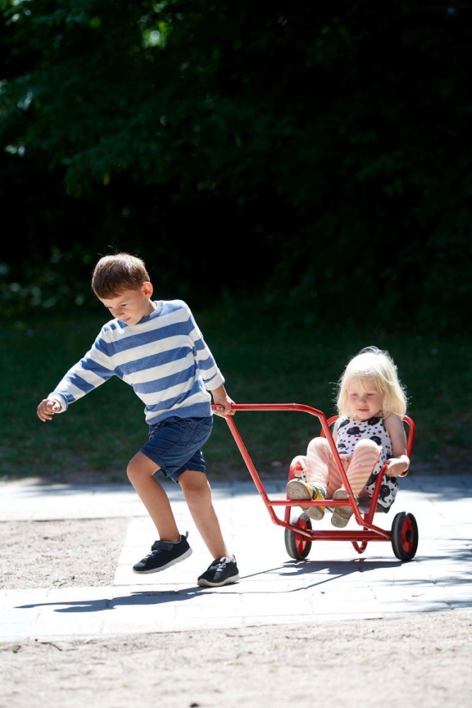 VIKING Sulky • Wer spannt sich vor den Sulky? Ein Kind ist Passagier, während ein anderes Kind zieht – natürlich im Wechsel! Sitz mit Festhaltebügel, rutschfestes Aluminiumtrittbrett und ein kleines Stützrad, um ein Umkippen zu vermeiden.