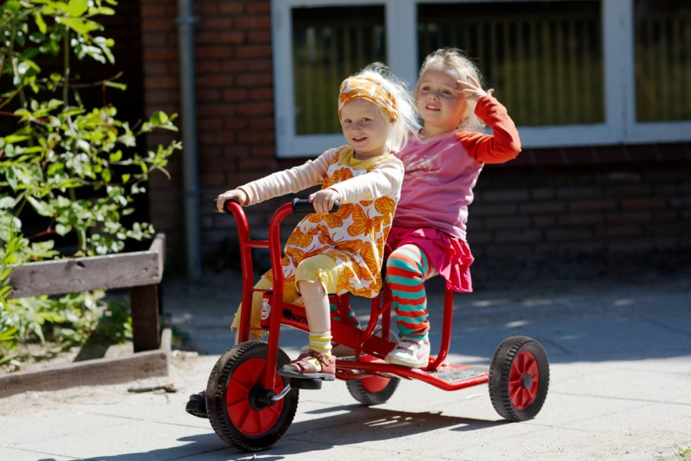 Dieses enorm beliebte, sehr funktionale Dreirad für zwei und mehr Kinder ist ideal für alle Arten von Rollenspielen. Der Sicherheitsbügel zum Festhalten für den «Beifahrer» gibt Kindern zusätzlich Sicherheit. Mit einem Anhänger lassen sich die Spielaktivitäten noch aufregender gestalten.
