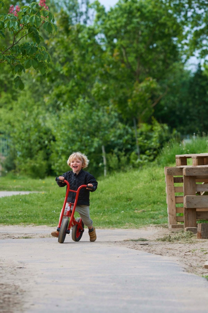 Mit dem Laufrad lernen Kinder sehr schnell, ein Gefühl für das Fahren und Lenken auf zwei Rädern zu entwickeln und das Gleichgewicht zu halten. Die Füße können immer - zum Abstützen und zum Antrieb - Bodenkontakt haben.