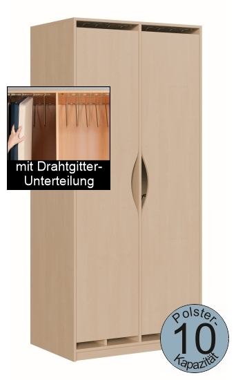 • Sie benötigen eine andere Kapazität für weniger oder mehr Liegepolster? Navigieren Sie eine Ebene nach oben!• Sie wollen statt der Drahtgitterunterteilung durchgehende Trennwände für die Liegepolster, dank der Sie unterschiedliche Polsterlängen im Schrank aufbewahren können und dank der sich die Polster nicht berühren (evtl. ist dies sogar eine Hygienevorschrift Ihres Trägers / Stadt / ...)? Navigieren Sie eine Ebene nach oben!