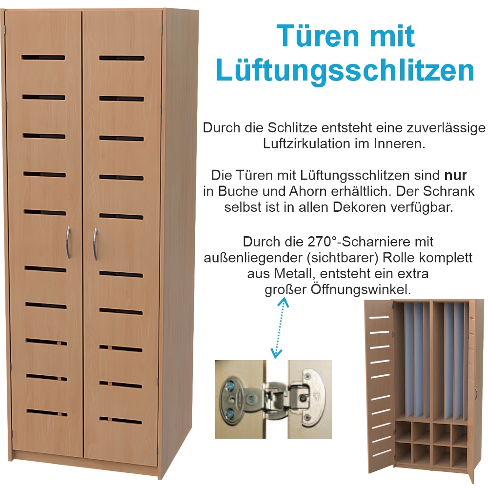 • 2 Türen (nicht abschließbar), mit Lüftungsschlitzen