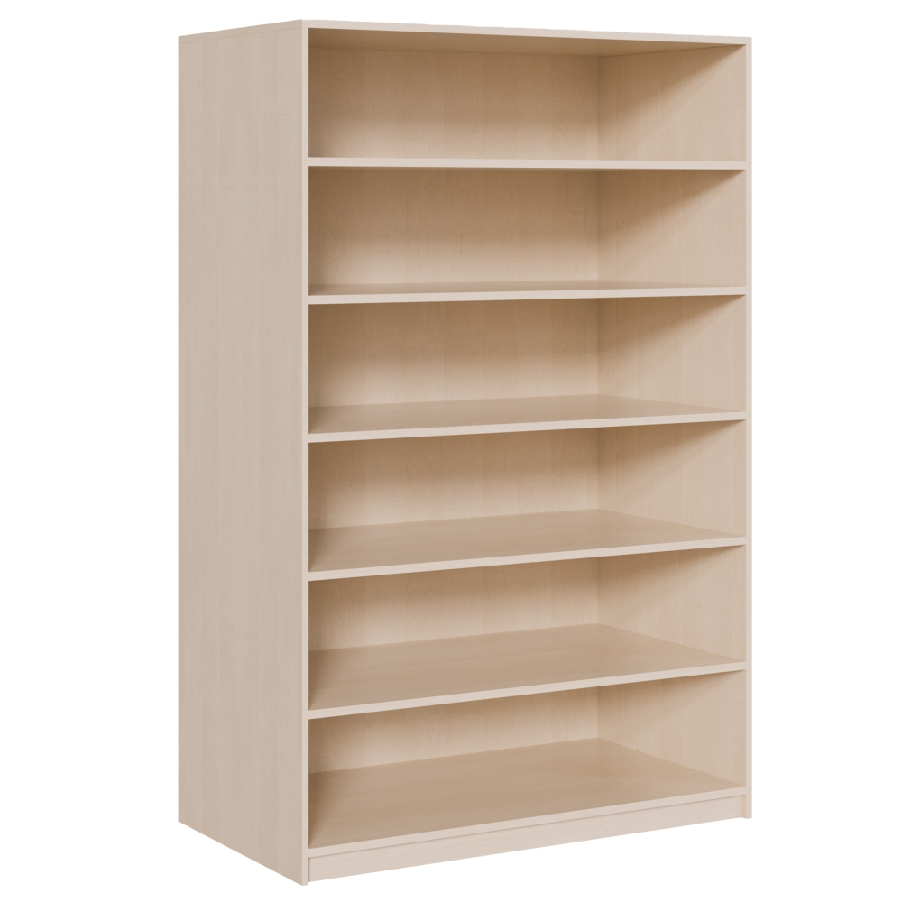 Die melaminharzbeschichteten Oberflächen sind besonders pflegeleicht und halten dem täglichen Einsatz zuverlässig stand. Eine stabile Sichtrückwand sorgt zusätzlich für sicheren Halt – ideal für lebendige Kita-Umgebungen. So bleibt alles ordentlich an seinem Platz und jederzeit griffbereit.