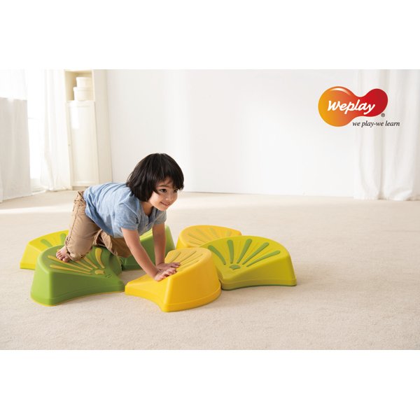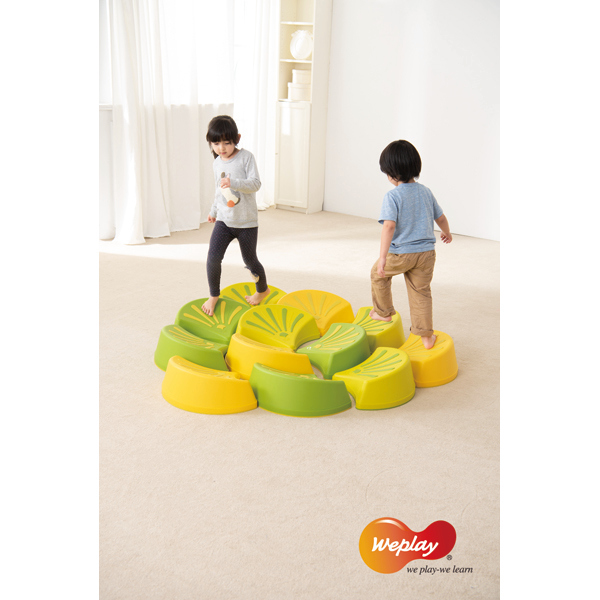 ... Die Steine in Blütenblätter-Optik simulieren durch ihre Neigung unwegsames Gelände eines Berges, felsigen Untergrund und Abhänge. Somit können die Steine nur durch Geschick und Konzentration bestiegen werden. Das Schwierigkeitslevel kann durch das Stapeln der Steine erhöht werden, dies dient auch zu einer platzsparenden Aufbewahrung. Für Sicherheit sorgt eine Anti-Rutsch-Gummierung an der Unterseite. Ebenso bietet eine Anti-Rutsch-Beschichtung auf der Trittfläche taktile Stimulation. Das einzigartige konkave Oberflächen-Design vereint schiefe und weite Flächen und fördert die Koordination und das Gleichgewicht. Man kann die Steine frei drehen um einen Parcours in verschieden Geschicklichkeitsgraden entstehen zu lassen. Durch das Platzieren der Steine in verschiedenen Richtungen werden die Kinder bei Ihrem Laufweg immer wieder angeregt ihren Schwerpunkt je nach Ausrichtung zu verlagern und so zu trainieren. Inhalt: 6 x Blatt-Stein (2 x grün, 2 x hellgrün, 2 x gelb). Maximal belastbar bis 60 kg.