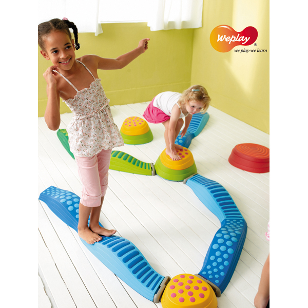 ... Als Ergänzung mit den Regenbogenflusssteinen KT0008, Honey Hills KT0016 sowie den Balance Clouds KT0012 oder als eigenständiges Set sehr vielseitig einsetzbar. Acht Wellenwege die zum Kreis, zur Schlange oder versch. Fantasiewegen gelegt werden können helfen zur Schulung von Bewegungskoordination, Stabilität, Konzentration, Muskelaufbau, Geschicklichkeit, Kreativität und Balance. Die verschiedenen Oberflächenstrukturen aus Gummi sind fest mit dem hochwertigen Kunststoff verbunden und halten ein "Leben lang", das gleiche Gummimaterial an der Unterseite sorgt für einen sicheren Stand. Ineinander gestapelt und in der mitgelieferten Tasche verstaut, ist die Flußsteinelandschaft platzsparend weg geräumt. Belastbarkeit bis 80 kg.