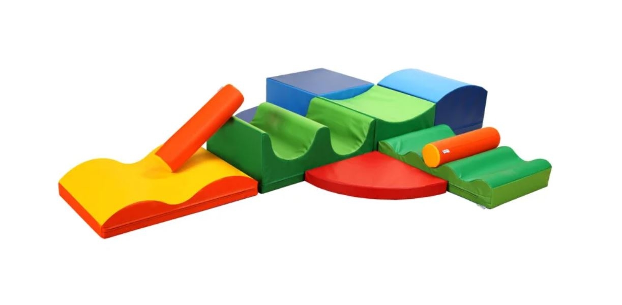 Bewegungslandschaft für Kinder aus 10 Baumodulen mit Schaumstoffkern. Die Oberfläche aus Leichtplanenbezug ist haptisch sehr angenehm, robust und strapazierfähig. Spiellandschaft für Kinder zum krabbeln, toben, klettern oder mal einfach nur sitzen und ausruhen. Kombinierbar mit den anderen Bewegungslandschaften MEDI.