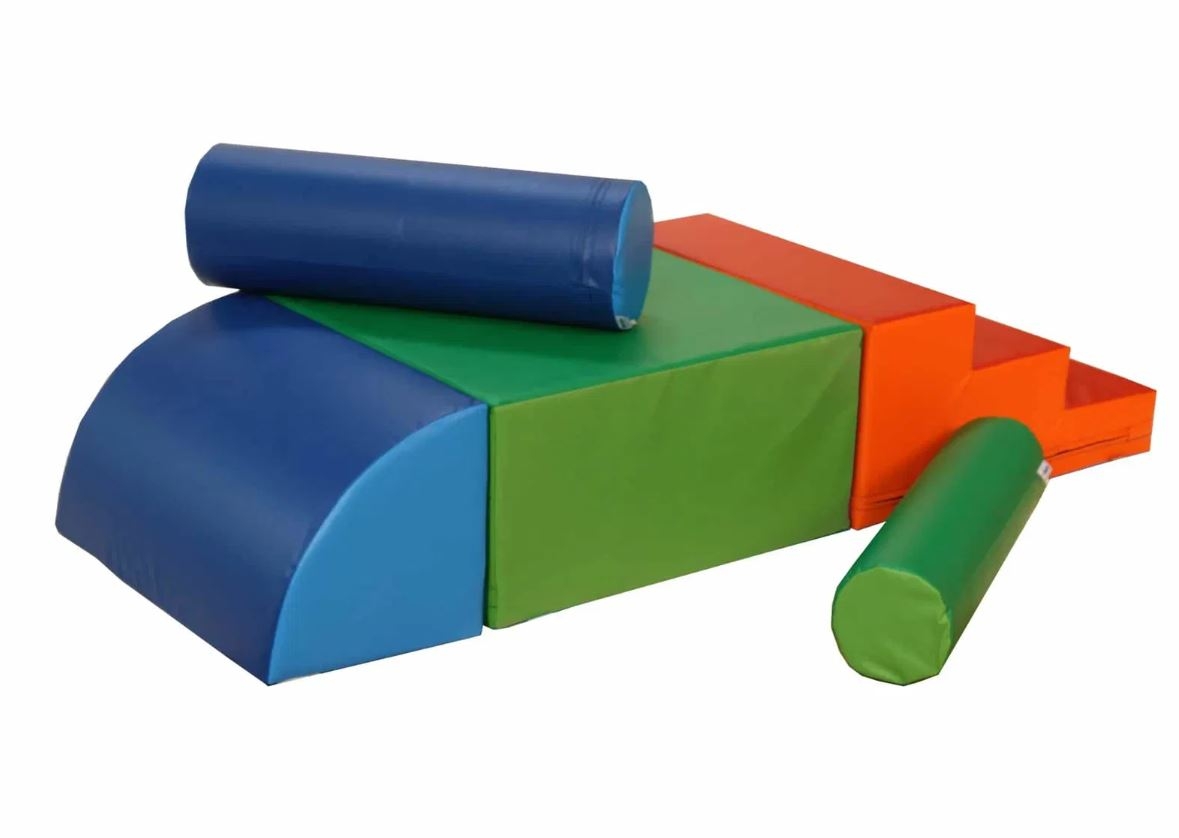 Bewegungslandschaft für Kinder aus 5 Baumodulen mit Schaumstoffkern. Die Oberfläche aus Leichtplanenbezug ist haptisch sehr angenehm, robust und strapazierfähig. Spiellandschaft für Kinder zum krabbeln, toben, klettern oder mal einfach nur sitzen und ausruhen. Kombinierbar mit den anderen Bewegungslandschaften MAXI.