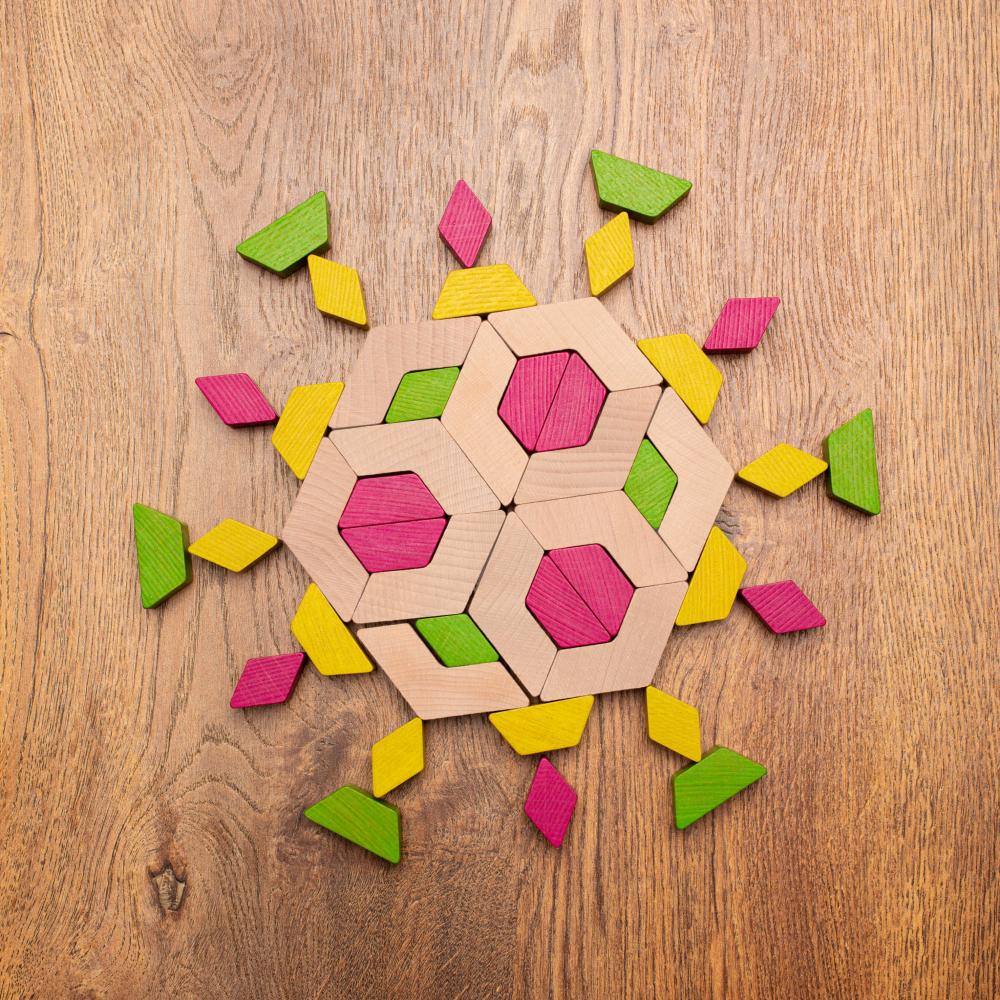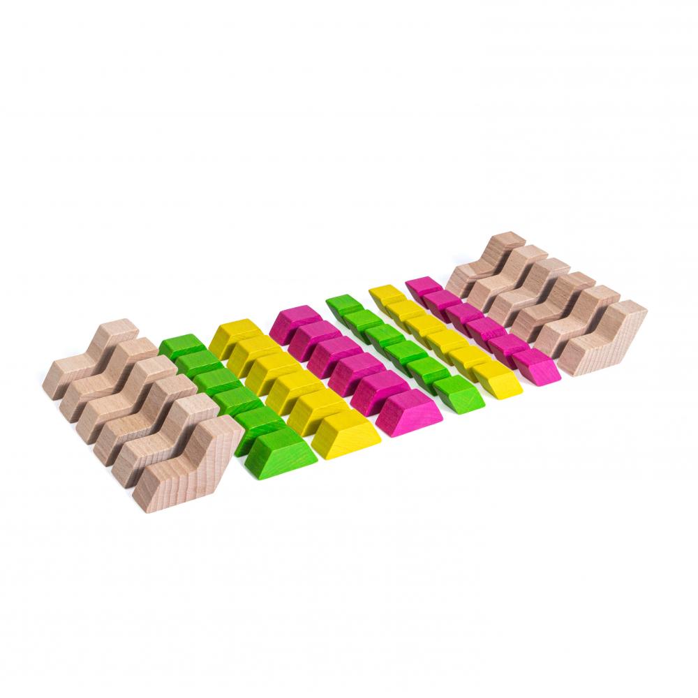 Die drei verschiedenen GeoBlox-Formen basieren auf einem gleichschenkligen Dreieck. Dadruch lassen sie sich natürlich und intuitiv aneinanderschmiegen oder klar und konstruktiv kombinieren. So entstehen beeindruckende Bauwerke, die jedes Mal einzigartig sind.