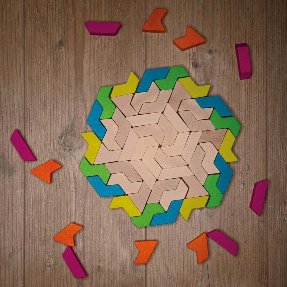 Die fünf verschiedenen Formen basieren alle auf dem gleichschenkligen Dreieck, dass sie sich alle wie natürlich und intuitiv aneinanderschmiegen oder klar und konstruktiv verbaut werden können. Es entstehen tolle Bauwerke, bei denen Keines dem Anderen gleicht.