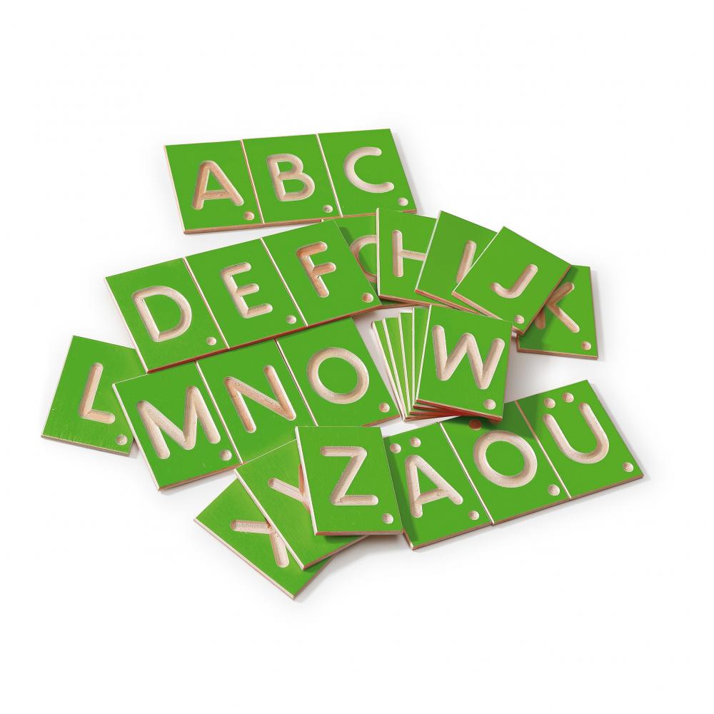 Das Begreifen von Buchstaben wird bei dem Erzi-Buchstabenspiel wörtlich genommen.