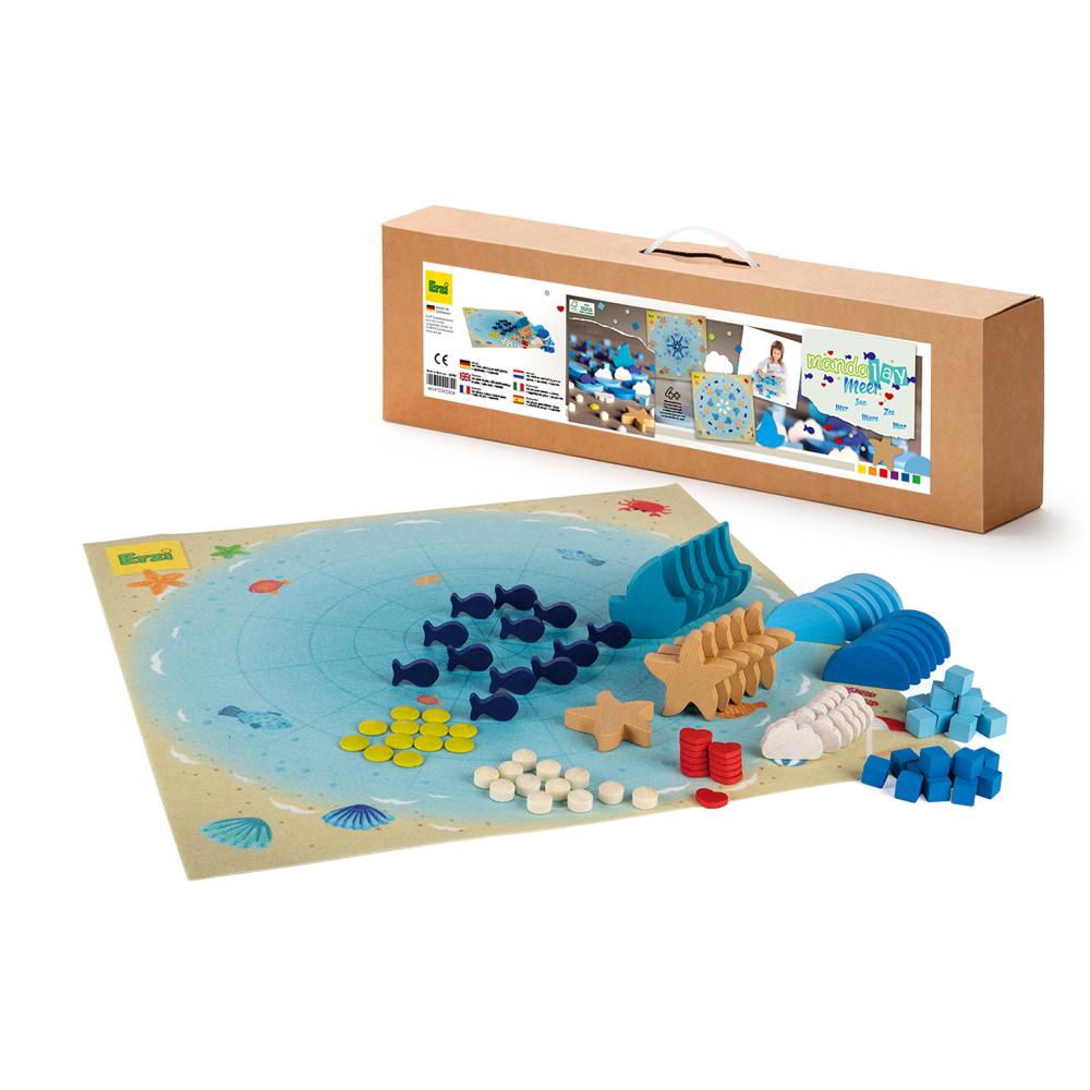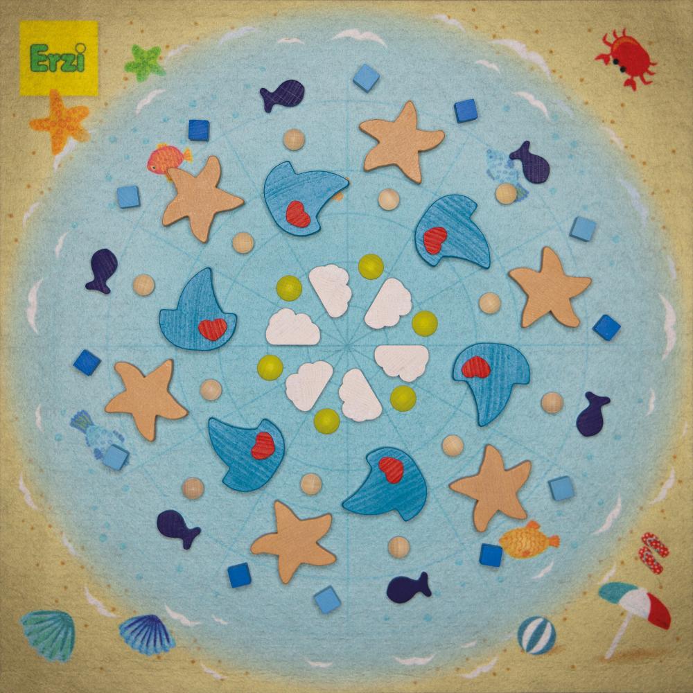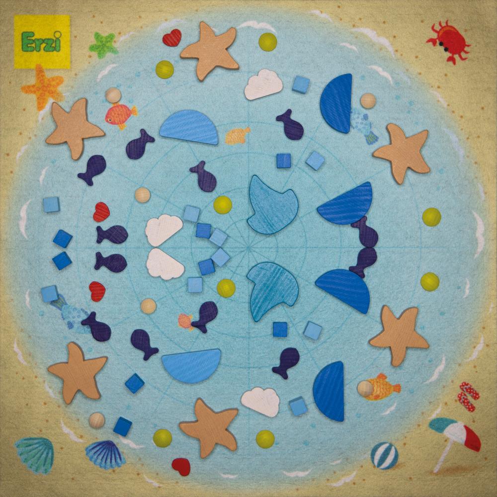 Verschiedene Formen und frohe Farben - fangfrisch aus dem Meer - laden zum ausdauernden Legen von unendlich vielen Mandalas ein. Im Set enthalten ist eine bunt gestaltete Spielmatte mit einem feinen Liniennetz, das beim gleichmäßigen Auflegen hilft.