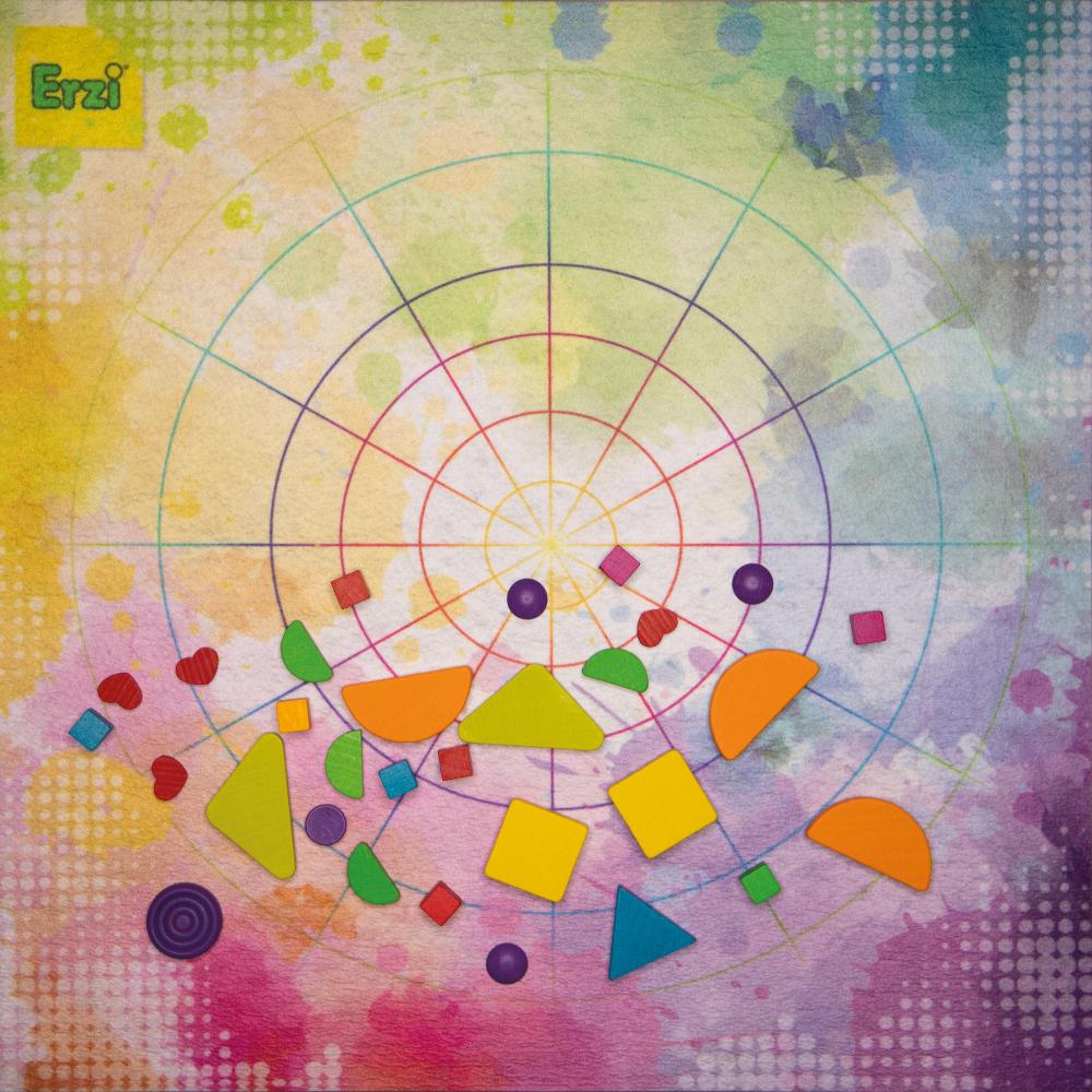 Verschiedene Formen und frohe Farben laden zum ausdauernden Legen von unendlich vielen Mandalas ein. Im Set enthalten ist eine bunt gestaltete Spielmatte mit einem feinen Liniennetz, das beim gleichmäßigen Auflegen hilft.