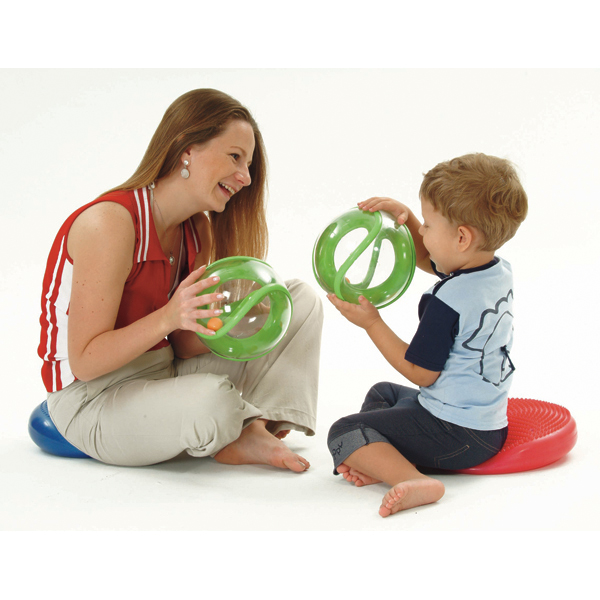 ... Der Ball muss sich in der geschlossenen Kugel entlang der Bahn bewegen. Dies kann in verschiedenen Schwierigkeitsleveln geschehen. A) durch drehen in den Händen, B) Kugel fest halten und die Arme bewegen, C) mit Ganzkörperbewegung. Inklusive Ballhalterung.