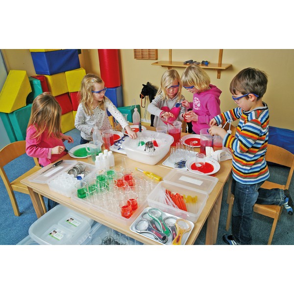 ... Das Winlab Forscher Set "Kids" ermöglicht einen direkten Einstieg in die experimentelle Welt der Naturwissenschaften. Hier dürfen die Kinder selbst forschen. Dank der kindgerechten, aber echten Labormaterielien fühlen sich Kinder wie richtige Forscher! Getreu dem Motto "Probieren geht über studieren" merken sich Kinder das praktisch erlernte wesentlich besser als theoretisches erworbenes Wissen. Das Interesse und die Lust an Naturwissenschaften werden geweckt, die Sinne und Konzentration geförtert, das Sprachvermögen trainiert - neue Begriffe erlernt - und die Teamfähigkeit gefördert. Die Labormaterialien wurden von erfahrenen Referenten des Vereins ABENTEUER LERNEN e.V. in Bonn in mehrjähriger intensiver naturwissenschaftlicher Kursarbeit mit Kindern im Vorschulalter erprobt. Das Set besteht aus qualitativ hochwertigen und sicheren Materialien, so dass ein langfristiger Einsatz in Vorschule und Kindergarten möglich ist. Im Set sind unter anderem enthalten: verschiedenste Messbecher, Schutzbrillen, Spatel und Messlöffel, Teller, Schüsseln, Dosen mit Deckel, Lupen, Siebe, Pinzetten, Pipetten, Thermometer, Stabfeuerzeug, Anleitung und vieles mehr. In den stapelbaren, wieder verschließbaren Kunststoff-Boxen ist alles sauber und übersichtlich verpackt.