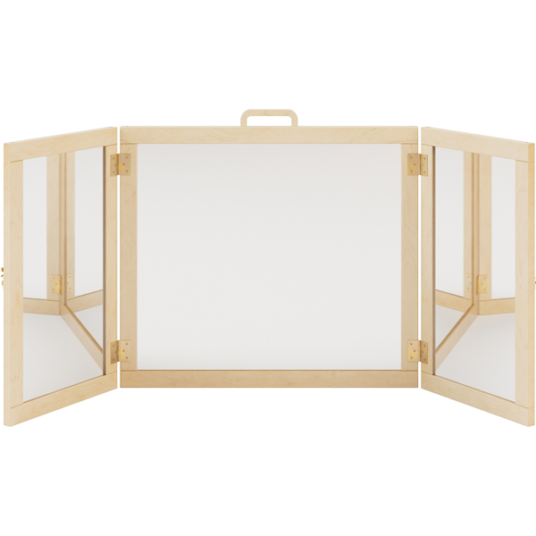 ... Im Klappspiegel können sich Kinder bei Sprachübungen sowohl frontal, als auch im Profil sehen. Das Sehen bei gleichzeitigem Hören der eigenen Worte fördert eine genaue Artikulierung. Der Spiegel kann mit angewinkelten Seiten auf dem Tisch stehen oder am Tragegriff an einer Wandhalterung (nicht inkl.) aufgehängt werden. Die Außenseiten des verschlossenen Klappspiegels sind weiß.