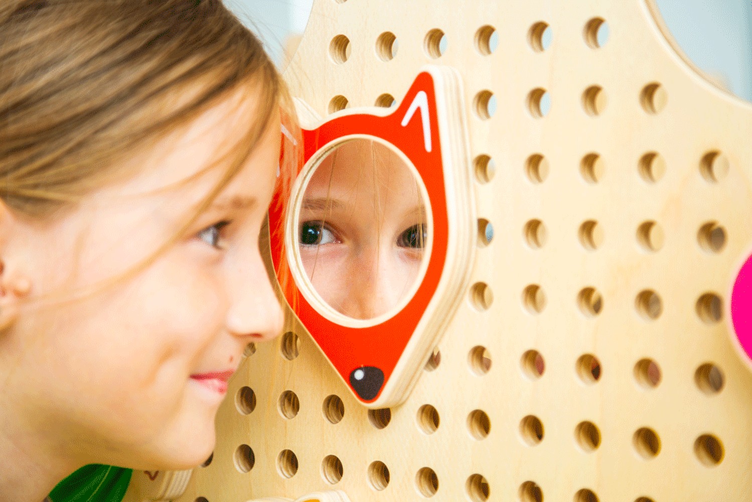 Diese Spiegel faszinieren. Mit dem PLUG it Smart Set "Basisplatte & Spiegel & Spiel Plugs" lässt sich Rollenspiel ausprobieren und Figuren gestalten: Bin ich ein Prinz oder eine Prinzessin? Ein Löwe, Fuchs oder eine Blume? Kinder experimentieren gerne spielerisch mit dem Bild, das von ihnen zurückgeworfen wird, und probieren verschiedene Rollen aus. Sie ziehen Grimassen, schauen böse und gefährlich, dann wieder lieb. Mit den Spiegeln und den bunten Spiel Plugs lassen sich Tiere oder Körperformen stecken.