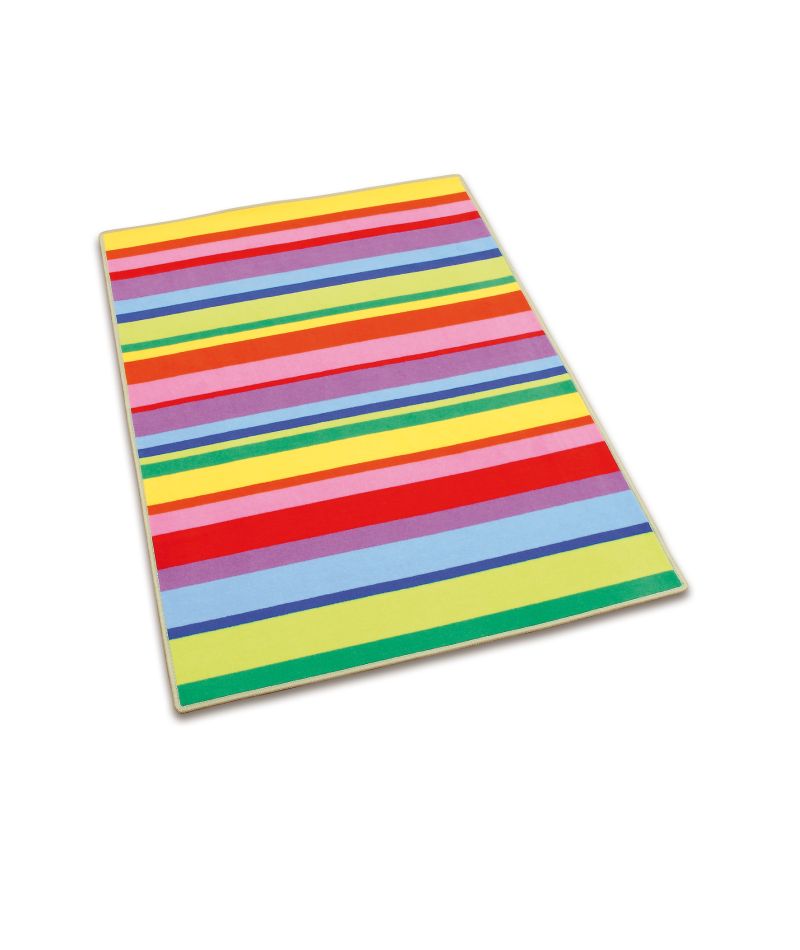 Buntgestreifter Spielteppich - ein Blickfang in jedem Gruppenraum