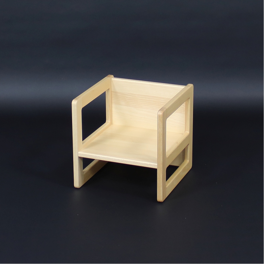 Der Verwandlungs-Stuhl ist ein echtes Multitalent für den Kindergartenalltag: robust, flexibel und mitwachsend. Mit wenigen Handgriffen lässt sich das Möbelstück drehen und wenden – mal ist es Stuhl, mal Tisch, mal Hocker. So entstehen immer wieder neue Spiel- und Lernsituationen, die Kinder aktiv mitgestalten können.