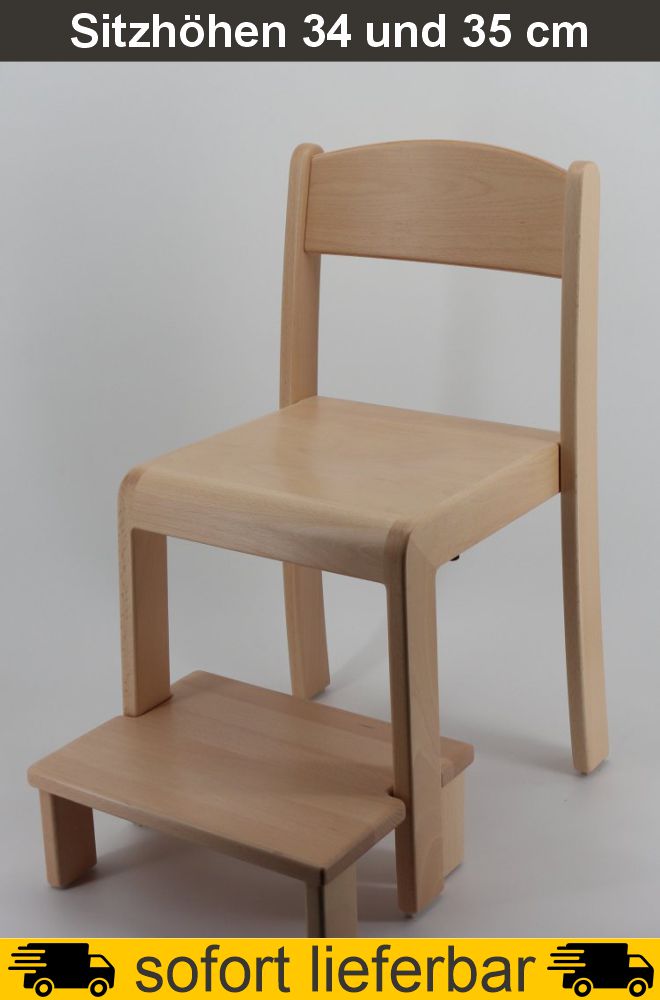 - Sitzhöhe 34 oder 35 cm, passend zu Tischhöhe 59 (oder 58) cm. Fußbankhöhe 12 cm