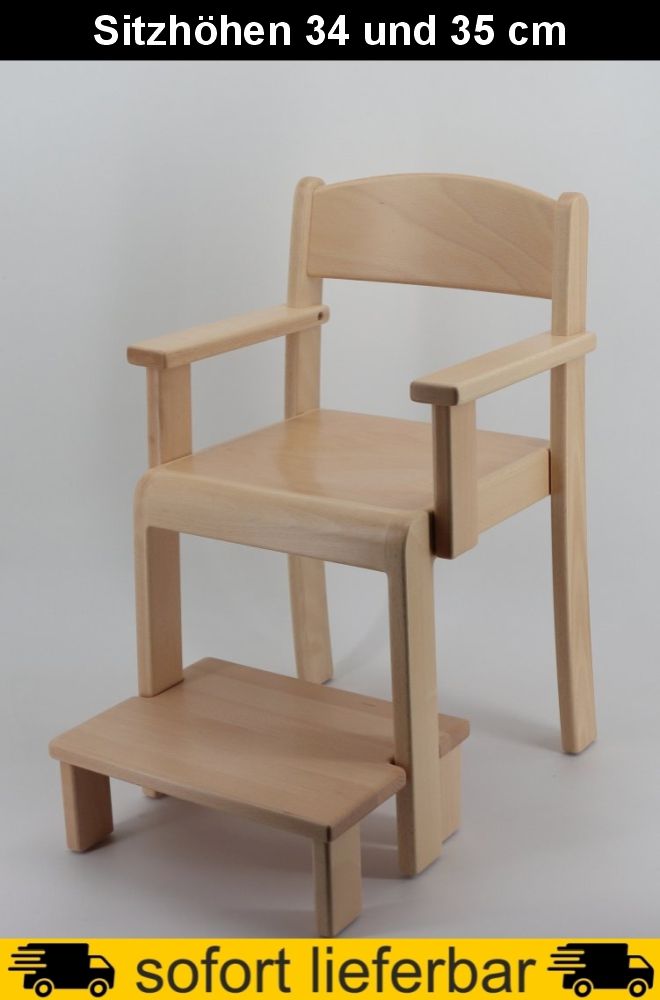 Dieses Set aus Armlehnenstuhl (Typ 3) „Eric“ und passender Fußbank sorgt für gesunden Sitzkomfort bei den Sitzhöhen 34 und 35 cm. Die 12 cm hohe Fußbank ermöglicht kleinen Kindern eine stabile Beinauflage – ganz ohne Schrauben einfach zwischen die Stuhlbeine gestellt und bei Bedarf wieder entfernbar. Die extra für den Stuhl Eric hergestellte Fußbank ermöglicht es Krippenkindern, die auf Sitzhöhe 34/35 cm sitzen (müssen), die Beine abzustellen, wie es bei der für sie vorgesehenen Sitzhöhe 22-26 cm der Fall wäre.