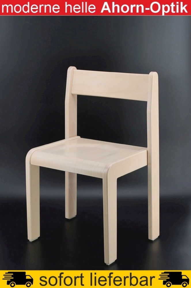 Dieser liebevoll gefertigte Kita-Stuhl in moderner Ahornoptik begleitet Kinder sicher durch ihren Alltag. Die körpergerechte Form mit sanfter Sitzmulde und ausgeprägter Knierolle bietet bequemen Halt – ideal für kleine Körper mit großen Bedürfnissen. Rückenlehne und Sitzfläche bestehen aus geformtem Schichtholz und unterstützen eine gesunde Sitzhaltung. Dank der nach hinten ausgestellten Beine und der stabilen Rahmenkonstruktion mit hochwertiger Trapezwinkelverleimung ist der Stuhl besonders kippsicher und langlebig – auch bei hoher Beanspruchung im Kita-Alltag.