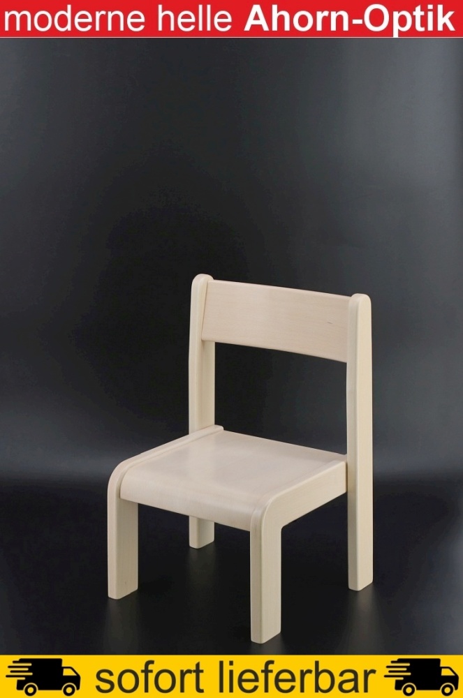 Dieser liebevoll gefertigte Kita-Stuhl in moderner Ahornoptik begleitet Kinder sicher durch ihren Alltag. Die körpergerechte Form mit sanfter Sitzmulde und ausgeprägter Knierolle bietet bequemen Halt – ideal für kleine Körper mit großen Bedürfnissen. Rückenlehne und Sitzfläche bestehen aus geformtem Schichtholz und unterstützen eine gesunde Sitzhaltung. Dank der nach hinten ausgestellten Beine und der stabilen Rahmenkonstruktion mit hochwertiger Trapezwinkelverleimung ist der Stuhl besonders kippsicher und langlebig – auch bei hoher Beanspruchung im Kita-Alltag.