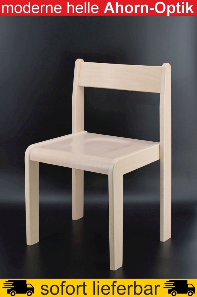 Dieser liebevoll gefertigte Kita-Stuhl in moderner Ahornoptik begleitet Kinder sicher durch ihren Alltag. Die körpergerechte Form mit sanfter Sitzmulde und ausgeprägter Knierolle bietet bequemen Halt – ideal für kleine Körper mit großen Bedürfnissen. Rückenlehne und Sitzfläche bestehen aus geformtem Schichtholz und unterstützen eine gesunde Sitzhaltung. Dank der nach hinten ausgestellten Beine und der stabilen Rahmenkonstruktion mit hochwertiger Trapezwinkelverleimung ist der Stuhl besonders kippsicher und langlebig – auch bei hoher Beanspruchung im Kita-Alltag.