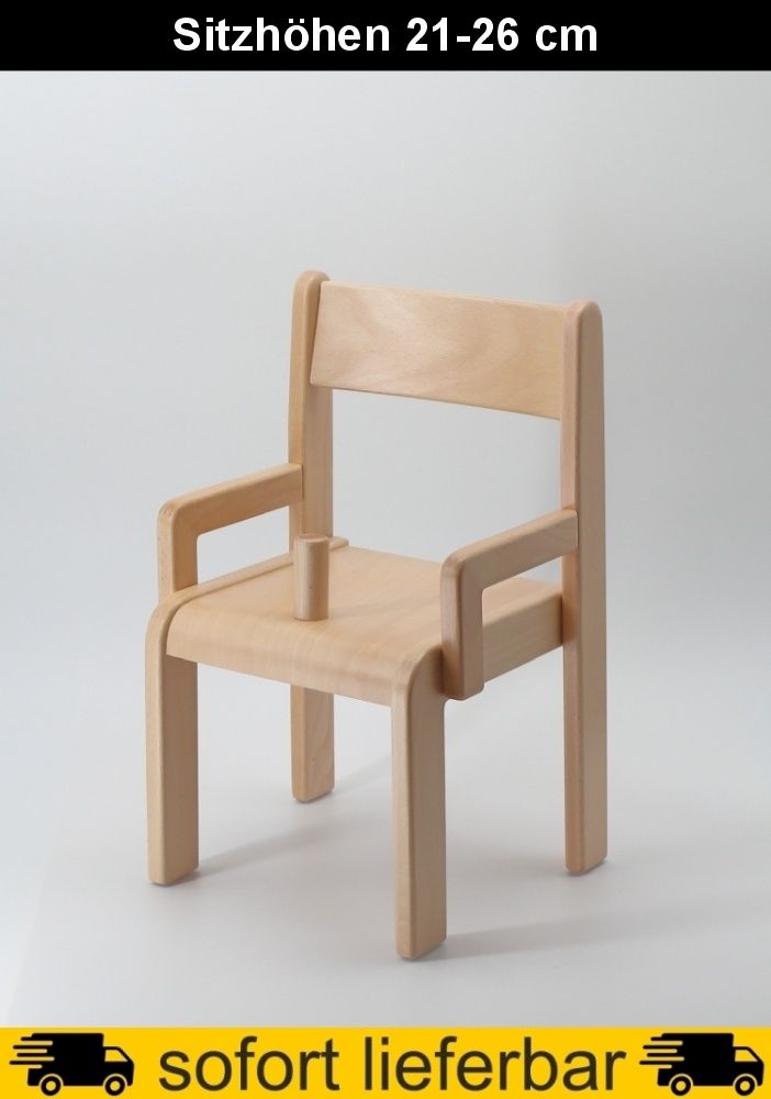 Diese kindgerechten Stühle mit niedrigen, verkürzten Armlehnen lassen sich bequem unter den Tisch schieben und sorgen so für Ordnung im Raum. Ideal für den flexiblen Kita-Alltag und abgestimmt auf die Bedürfnisse kleiner Kinder. Der zusätzliche Knoppel verhindert das Herausrutschen der Kinder aus dem Stuhl und gibt extra Sicherheit. Wenn er nicht mehr benötigt wird, kann man den Knoppel einfach entfernen.