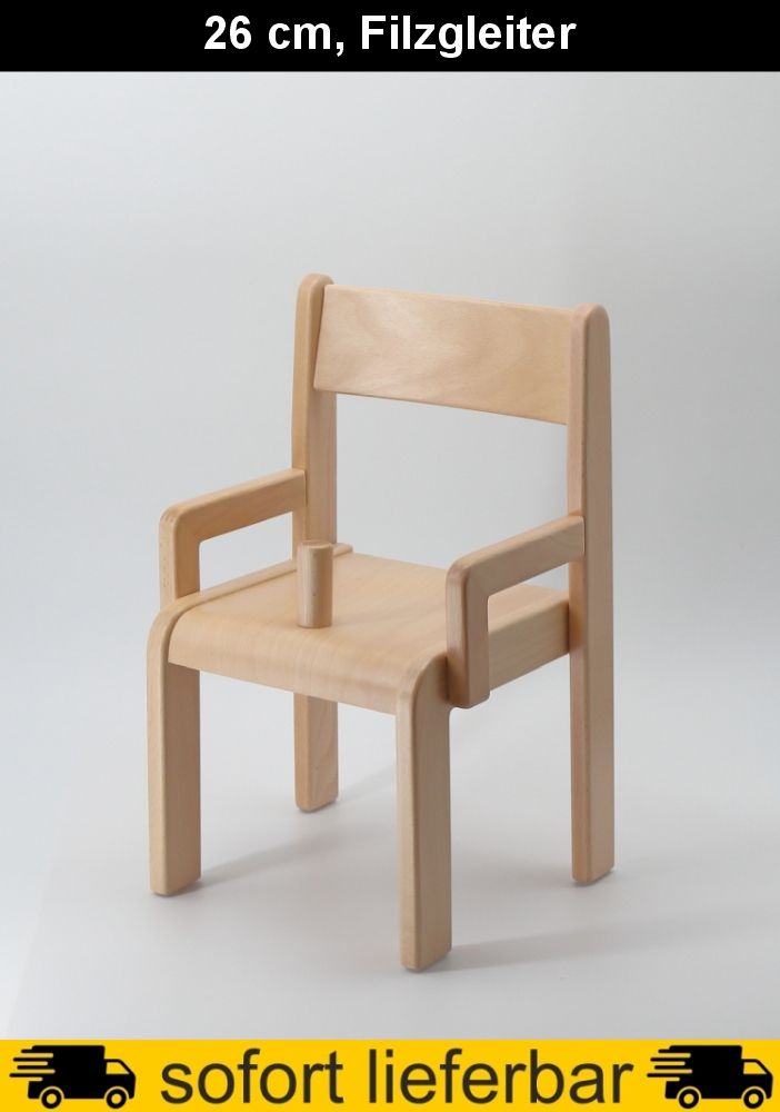 Stuhl Tim mit Armlehnen Typ 1 und Knoppel, Sitzhöhe 26 cm, Filzgleiter