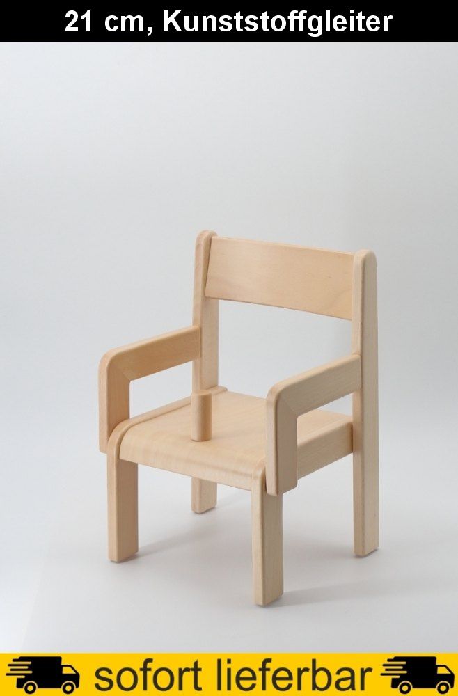 Stuhl Tim mit Armlehnen Typ 2 und Knoppel, Sitzhöhe 21 cm, Kunststoffgleiter