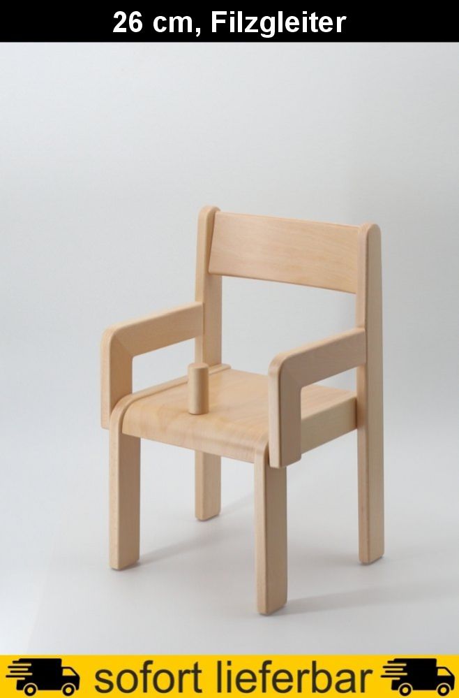 Stuhl Tim mit Armlehnen Typ 2 und Knoppel, Sitzhöhe 26 cm, Filzgleiter