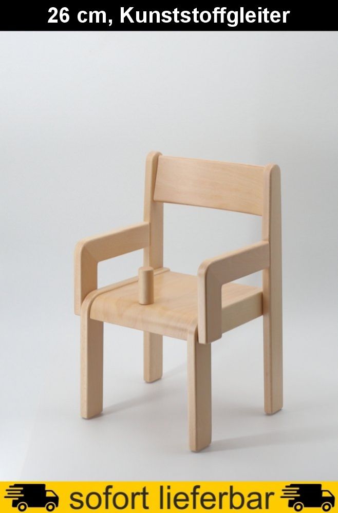 Stuhl Tim mit Armlehnen Typ 2 und Knoppel, Sitzhöhe 26 cm, Kunststoffgleiter