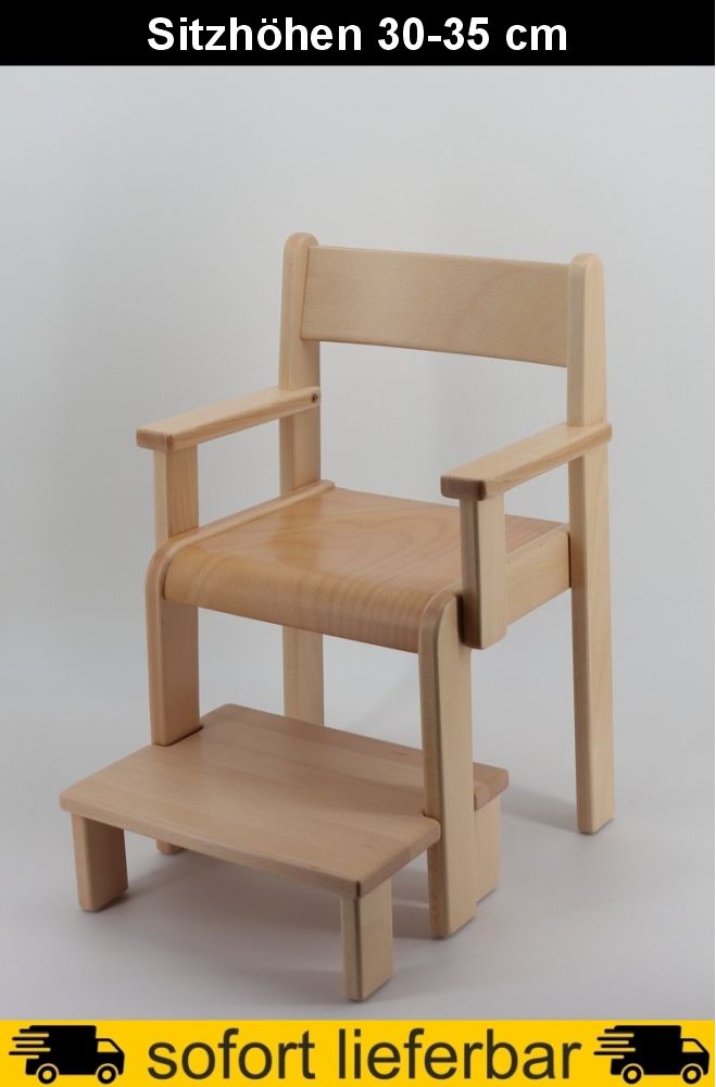 Dieses Set aus Armlehnenstuhl (Typ 3) „Tim“ und passender Fußbank sorgt für gesunden Sitzkomfort bei Sitzhöhen von 30 bis 35 cm. Die 12 cm hohe Fußbank ermöglicht kleinen Kindern eine stabile Beinauflage – ganz ohne Schrauben einfach zwischen die Stuhlbeine gestellt und bei Bedarf wieder entfernbar.