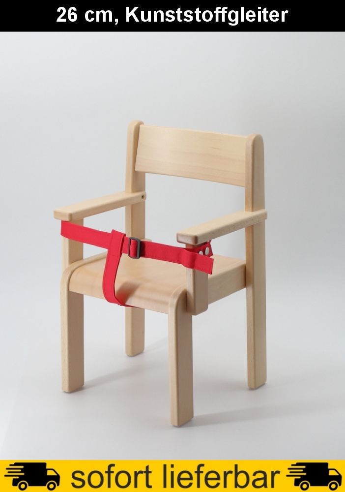 Stuhl Tim mit Armlehnen Typ 3 und Haltegurt, Sitzhöhe 26 cm, Kunststoffgleiter