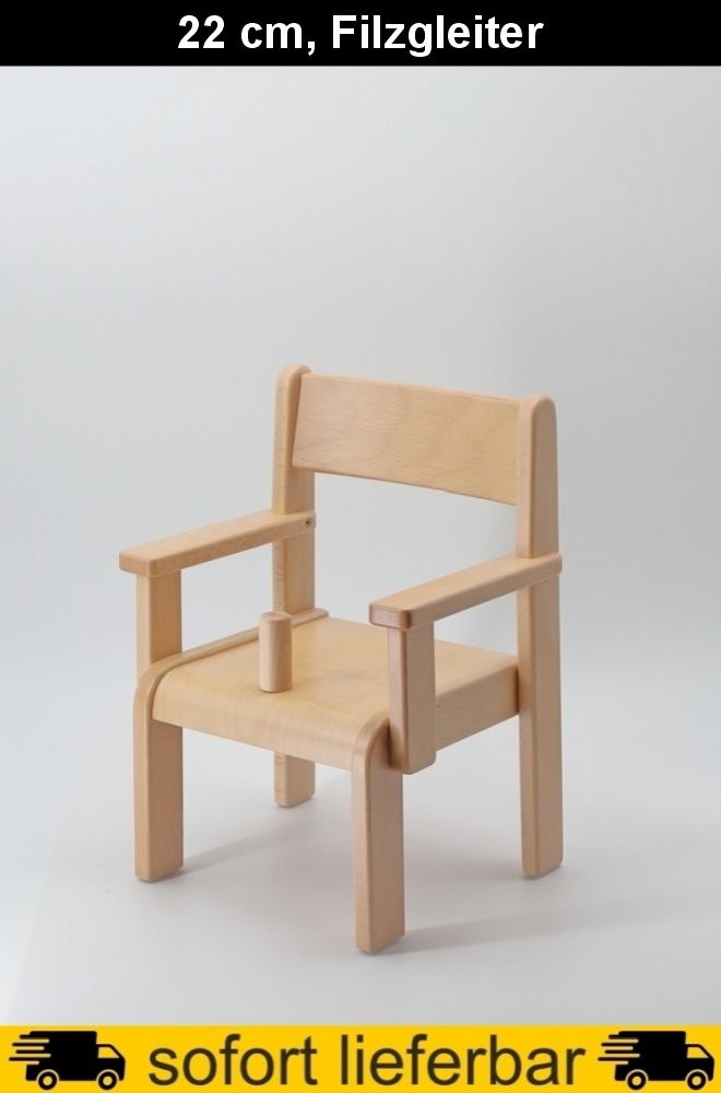 Stuhl Tim mit Armlehnen Typ 3 und Knoppel, Sitzhöhe 22 cm, Filzgleiter