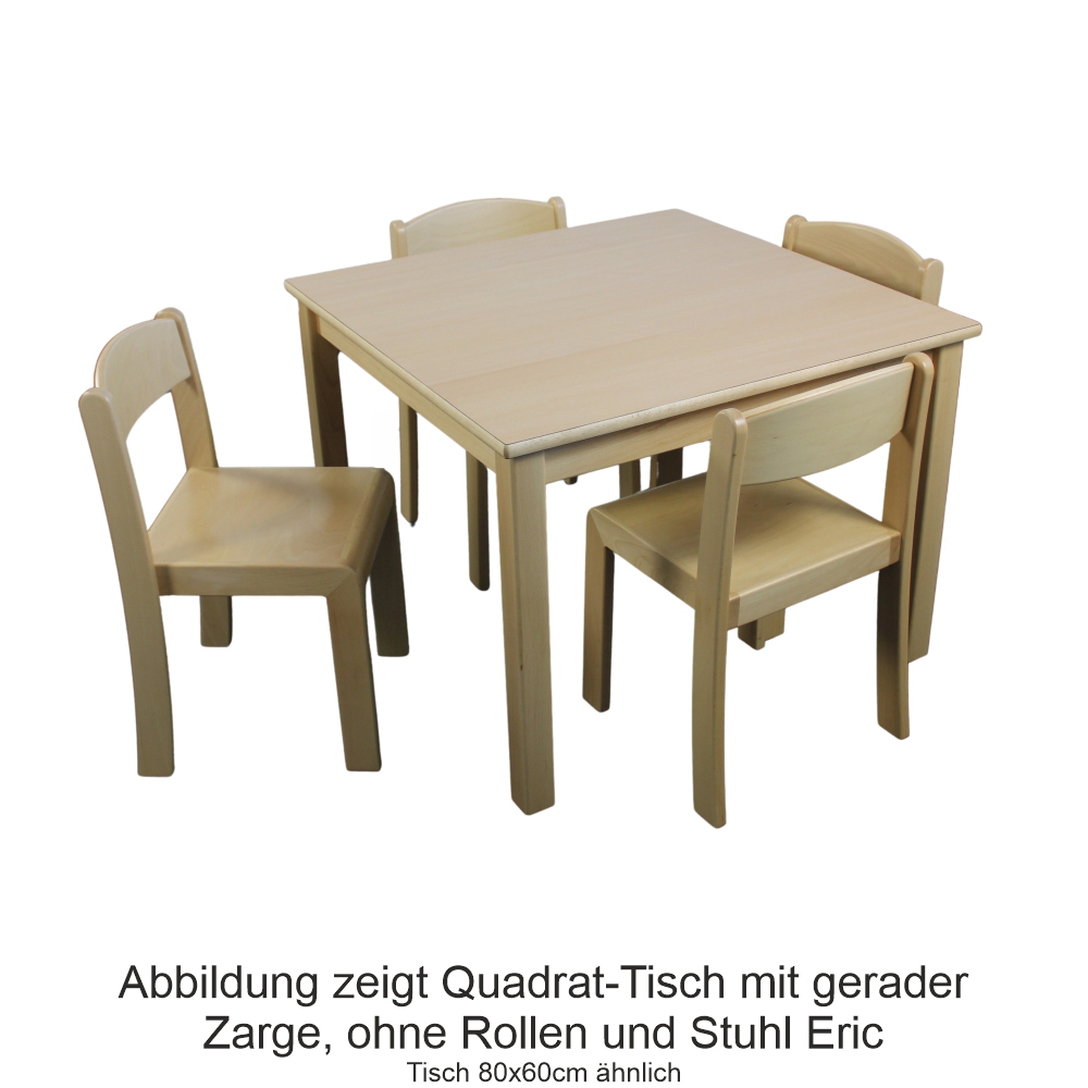 Der Rechteck-Tisch 80 x 60 cm ist stabil, sicher und für den täglichen Einsatz im Kindergarten gemacht. Die robuste HPL-Tischplatte in Buche natur ist kratzfest, pflegeleicht und 19 mm stark. Gestell und Beine aus massivem Buchenholz (48 x 48 mm), farblos lackiert, geben dem Tisch seine natürliche Ausstrahlung und lange Haltbarkeit. Sanft gerundete Kanten sorgen für Sicherheit im Gruppenalltag. Erhältlich in Tischhöhen von 36 bis 76 cm sowie in vier Ausführungen – mit gerader oder geschweifter Zarge, jeweils mit oder ohne Rollen – passt dieser Tisch in jede Einrichtung.