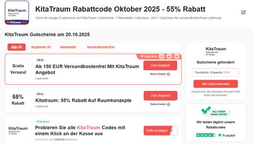 KitaTraum übernimmt keine Haftung für Schäden, Verluste oder sonstige Beeinträchtigungen, die durch die Nutzung oder den Versuch der Nutzung nicht autorisierter Rabattcodes entstehen. Dies gilt insbesondere für Schäden durch Phishing, Schadsoftware oder Datenmissbrauch.